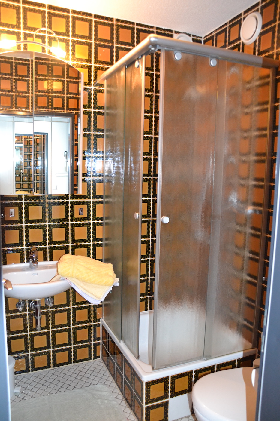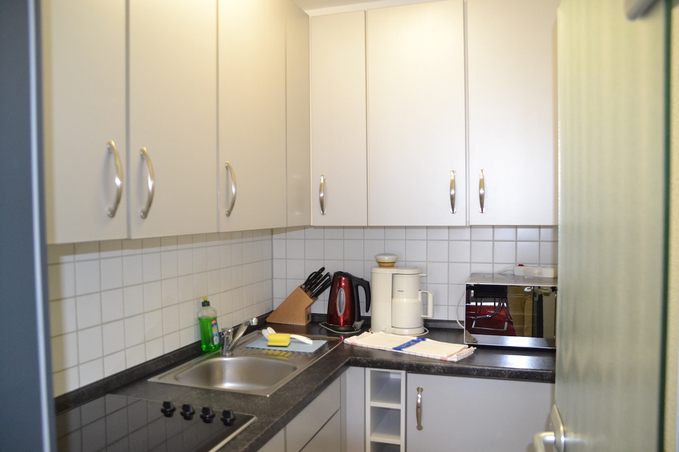 Die Wohnung ist mit einem Duschbad ausgestattet. Die Küche beinhaltet einen Kühlschrank, ein Ceranfeld-Herd sowie eine Kombimikrowelle mit Grill. Über ein appartementeigenes Telefon können Sie kostenlos ins deutsche Festnetz telefonieren, bzw. sich von den Daheimgebliebenen anrufen lassen. W-LAN ist in allen Ferienwohnungen gratis.